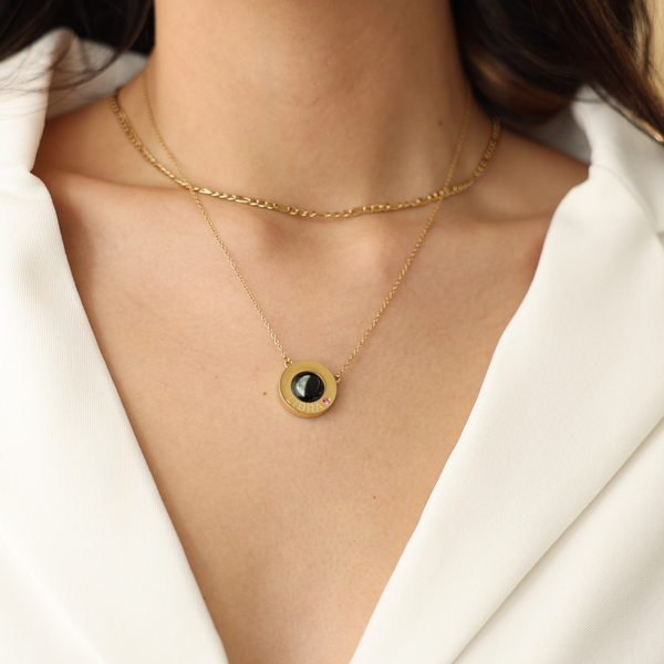The Libra Lunar Soulkeeper Necklace is a celestial treasure crafted to honour your unique place in the universe. Featuring the moon phase from a date meaningful to you, your zodiac sign artfully inscribed, and a delicate birthstone, this necklace brings together the energies that shape your soul. Each element is chosen with intention, creating a personal talisman that connects you to the night sky and the cosmic forces that guide your journey. Wear the Lunar Soulkeeper as a reminder of your inner light and the timeless bond you share with the universe.