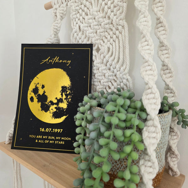 Transform any meaningful date into a timeless keepsake. Whether celebrating a birth, anniversary, wedding day, or honouring the memory of a loved one, our custom moon phase prints preserve that exact moment forever.