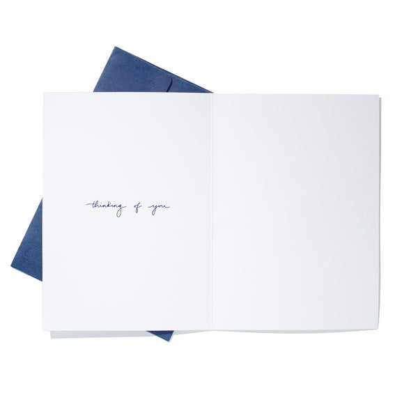 Crafted in high-quality paper, this 5 x 7 inch card comes with a vibrant blue envelop as dark as the night sky.
