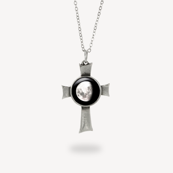 The Celtic Cross is a simple classic pewter cross pendant.  Every moon glows in dark environments just like the moon in the sky that night, which serves as a constant reminder of the events and people that are important to you.