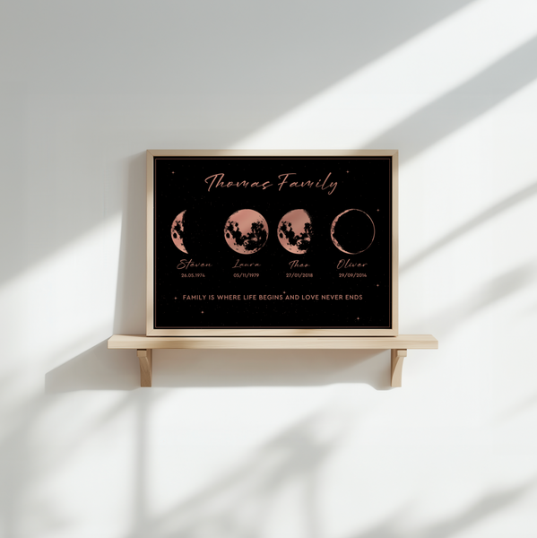 Transform any meaningful date into a timeless keepsake. Whether celebrating a birth, anniversary, wedding day, or honouring the memory of a loved one, our custom moon phase prints preserve that exact moment forever.