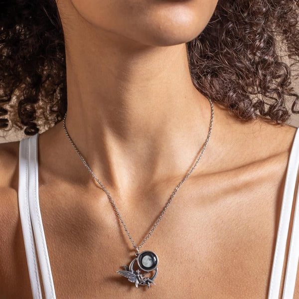 The mythical, legendary fairy is believed to have magical powers and is envied by all creative minds. Our Fairy on the Moon Necklace will make you feel more magical than ever as you emit radiant beams of fairy light wherever you go! You're sure to attract all sorts of interesting people and experiences during every phase of the moon in or out of the forest. Like the moon itself, our lunar charms catch the rays of the sun by day to illuminate in darkness -- creating a soft soulful glow that will surely be a conversation starter!