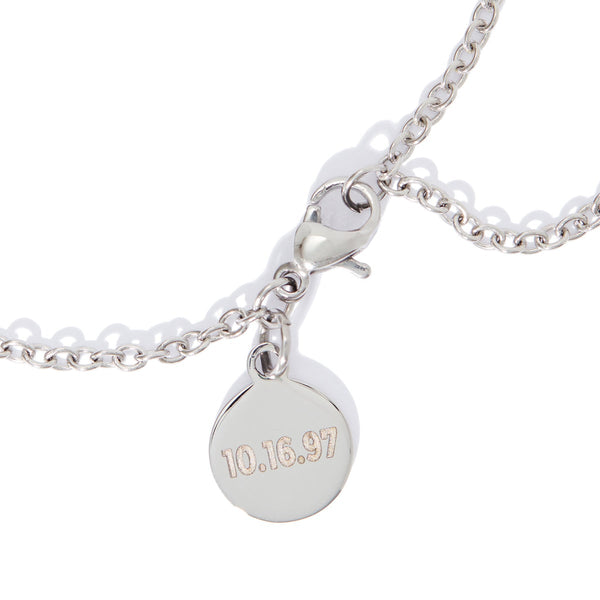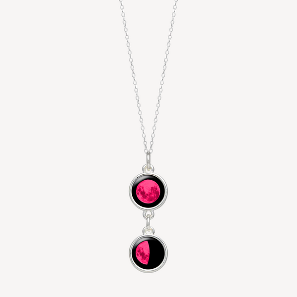 A double delight. Let the Mini Ituri Necklace in luminous silver plate remind you of what fills your heart, like the birthdays of you and your lover, or those of your children, or cherished moments shared with family and friends. Featuring two 10mm lunar charms that light in darkness like the moon itself, the Ituri does more than delight the eye, it tells your personal story. Whether you choose to make it yours or give it to someone special, the necklace will arrive with a card describing the moon phases you've selected.