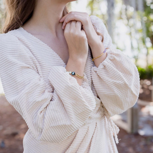 Ready to make an impact on your jewelry collection? With a thick curb link chain, tiny heart charms, a crystal rhinestone and of course the moon phase from your special date, it’s the details in this piece that make it a big deal. The final touch to any outfit to make a lasting impression of being effortlessly chic and stylish. Wear it on its own or pair it with one of your other Moonglow favourites. We recommend pairing it with the Amethyst Allure Bracelet for a match made in the heavens.
