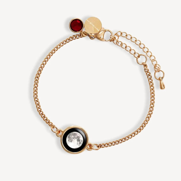 Birthdays. Theres something magical about them. Celebrate the wonder of your special day with the sparkle of gemstones and the glow of the moon on the day you were born. Beautifully crafted in luminous gold plate, the adjustable chain link bracelet circles the wrist reminding you of the month and the moment you were forever connected to the moon.