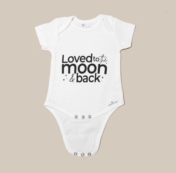Welcome sweet babies to the world with the global expression of love - Loved "To the Moon and Back". The super soft, tagless back onesie comes in one desirable size, 3-6 months. Machine-wash in cold water with like colors.  And don't forget to take pictures of the bundle of joy feeling all the love from family and friends, and in the extra cozy onesie!