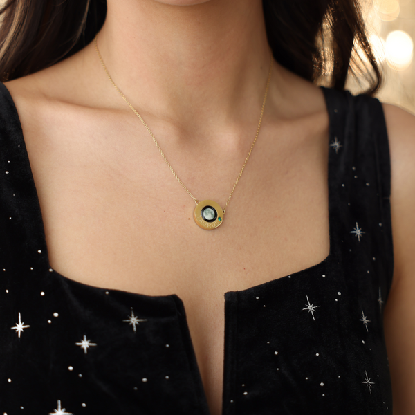 The Taurus Lunar Soulkeeper Necklace is a celestial treasure crafted to honour your unique place in the universe. Featuring the moon phase from a date meaningful to you, your zodiac sign artfully inscribed, and a delicate birthstone, this necklace brings together the energies that shape your soul. Each element is chosen with intention, creating a personal talisman that connects you to the night sky and the cosmic forces that guide your journey. Wear the Lunar Soulkeeper as a reminder of your inner light and the timeless bond you share with the universe.