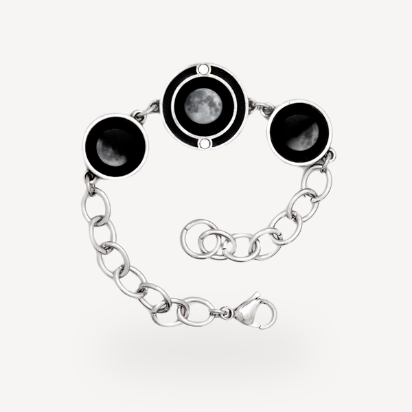 The Rebirth Bracelet features the phase of the moon on 3 dates of special meaning to you -- whether its your birthday or that of your child or spouse -- any memorable milestones deserves to be celebrated! Like the moon itself, our lunar charms catch the rays of the sun by day to illuminate in darkness -- creating a soft soulful glow that will surely be a conversation starter!