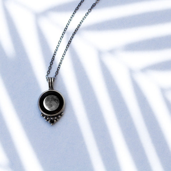 Our Classic Necklace combines an awe-inspiring moon phase charm with the luxe sparkle of a black swarovski crystal. It is a versatile piece with an elegant design that can be worn to compliment any outfit or special occasion, whether casual or formal.
