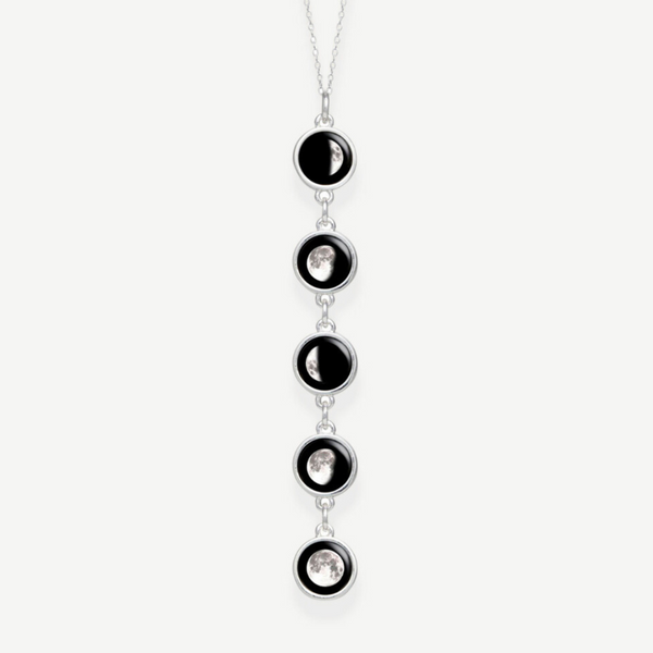 Instant glamour. Feel the energetic effects five of moons that tell your personal story with the uniquely beautiful Five Moon Necklace in Silver.