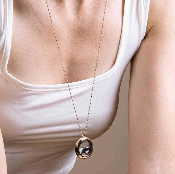 You'll love the Zen simplicity of two moons gently touching that captures the essence of your romance. The Lovers locket from our Golden Memories collection features a pair of mini moon phase charms in a classically feminine rose gold necklace.
