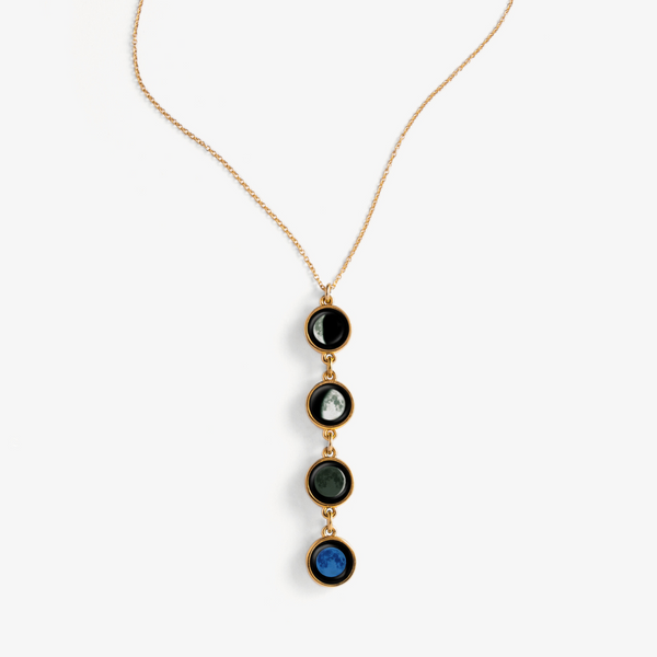 The Quadrupled will arrive with cards describing the moon phases you've selected. Whether for special occasions or every day wear, this golden talisman is certain to inspire awe.
