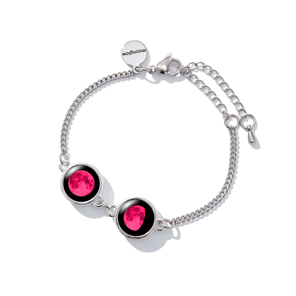 Together always, two moons that remind you of what really matters. Inspired by Pallene (pa-lee-nee), the small natural satellite that orbits Saturn, this playful yet deeply personal bracelet circles the wrist for a look thats classic, timeless and modernly feminine. Beautifully crafted in luminous stainless steel, the adjustable chain link bracelet holds two eye-catching silver mini lunar charms that glow in darkness like the moon itself. And like a magnet for all good things, it inspires wonder and conversation every time you wear it.
